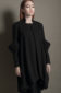 Circle black jacket. Semi-circle cuts. One front pocket. Three-quarter length sleeves.