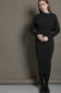 Black elastic midi dress. Round neck.