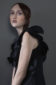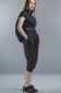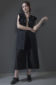 Black Papery Cotton origami dress. Front button fastening.